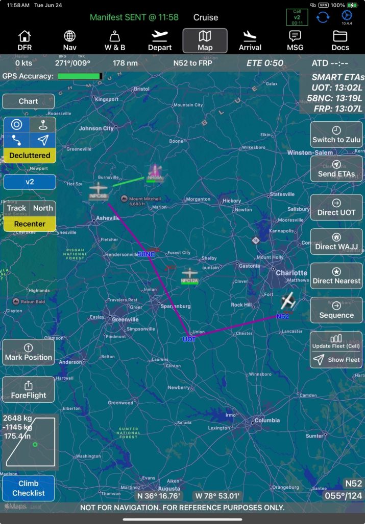 CHART – Tap the chart button to select nav charts loaded from FlightSpan™ Ops. (Your company’s nav charts are managed in FlightSpan Ops.)