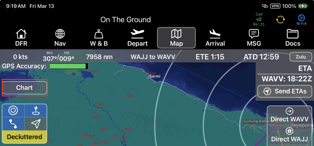 - Pin icon: Waypoints (runways and LZs) displaying on the chart