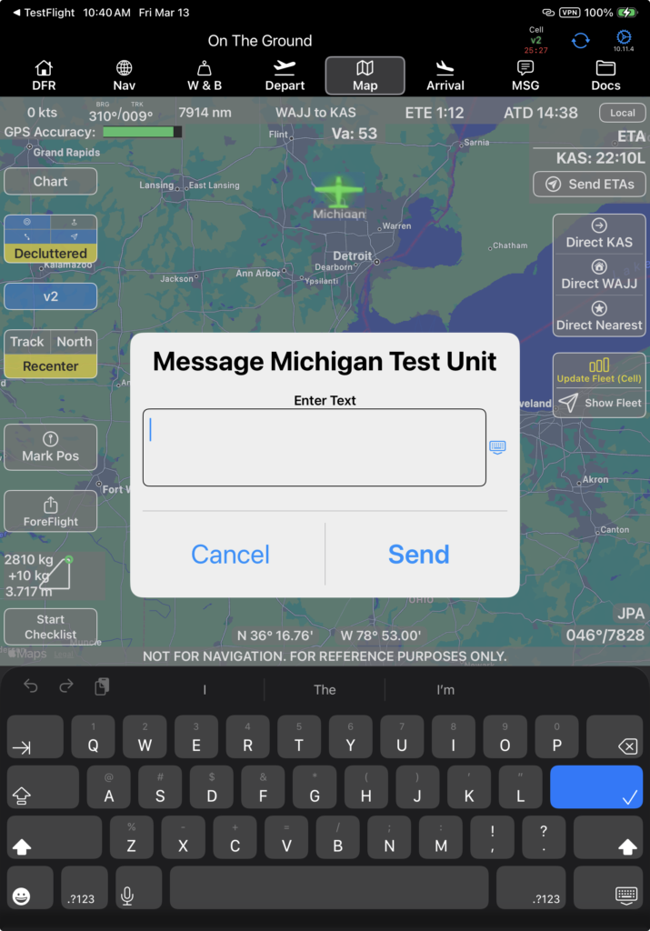 Tap Message to send a message to that aircraft.