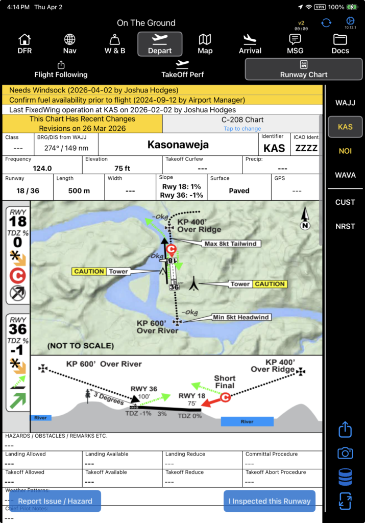 Note: FlightSpan will continue to display the chart for that aircraft type for all runways until you manually change it, or until you change to a different DFR.