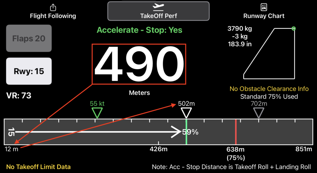 - See whether or not the estimated takeoff roll provides accelerate-stop distance