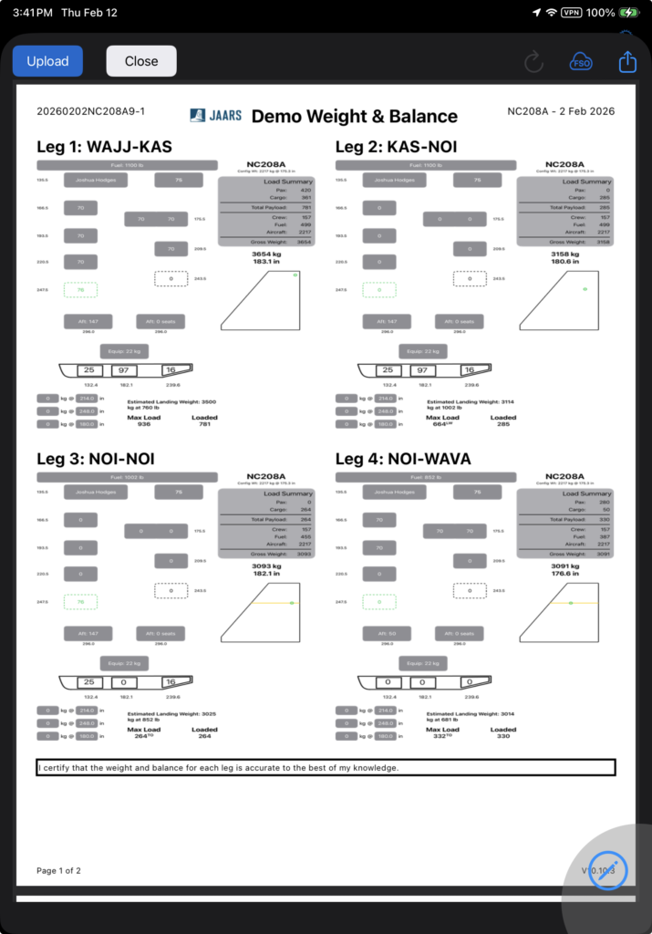 If the “Print Weight And Balance Form” Company EFB Preference is enabled, the Weight and Balance form will open next.