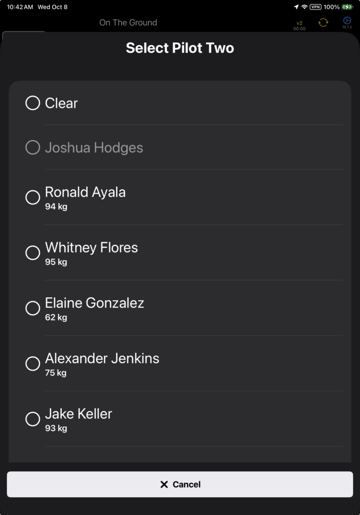 Tap the approaches column to add approaches, then the plus or minus buttons to add or remove approaches for each pilot.