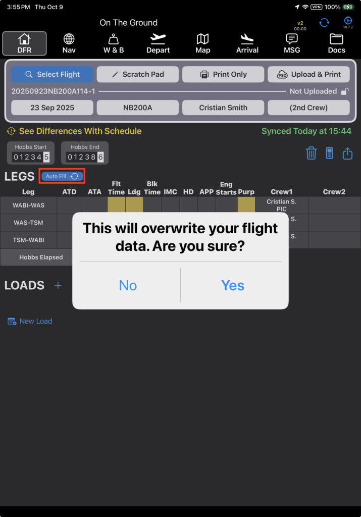 Tap on the Edit Takeoffs button to adjust the takeoff assignments if needed. Total takeoffs must equal total landings.