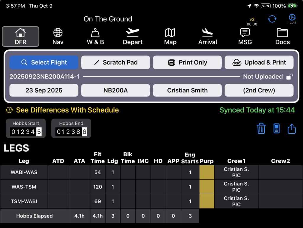 FlightSpan™ will proportionally distribute to each leg the total Hobbs time as flight time.