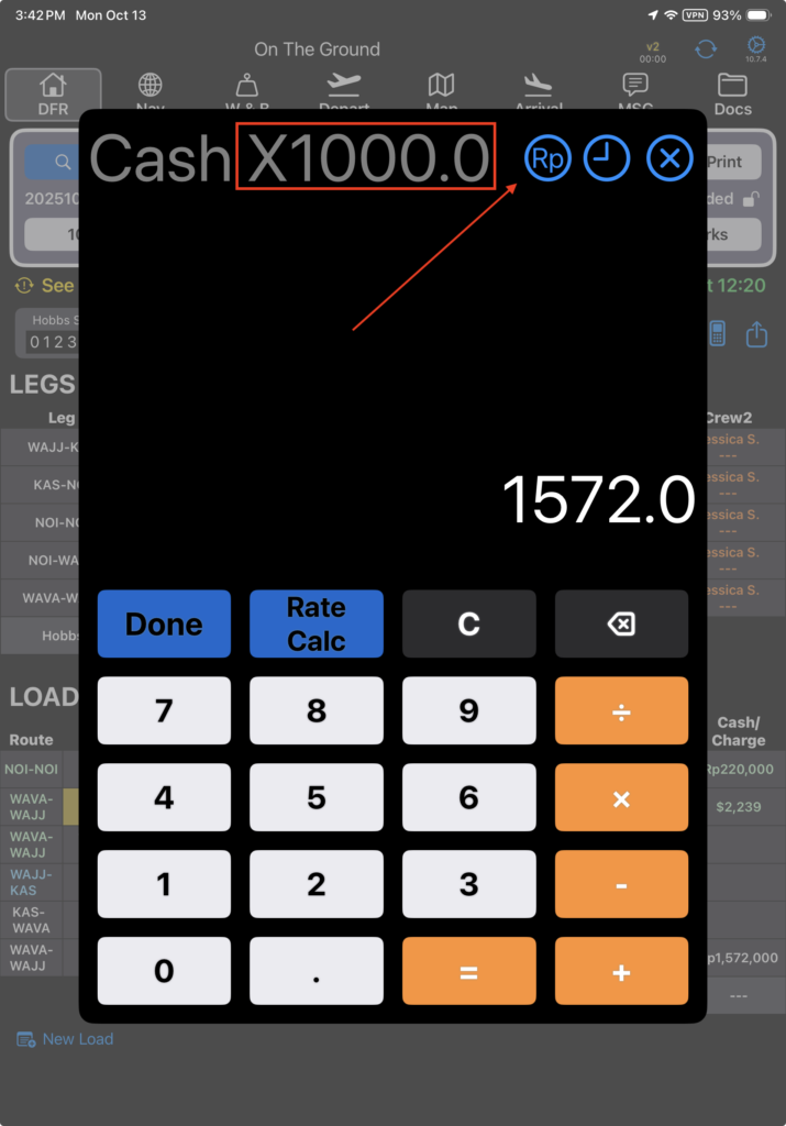 When changing currencies, for the currency set in the Company EFB Preference “Pilot Receipts billing_currency_id” only, the decimal will be moved by the multiplier set in the Company EFB Preference “Divide Currency By”.