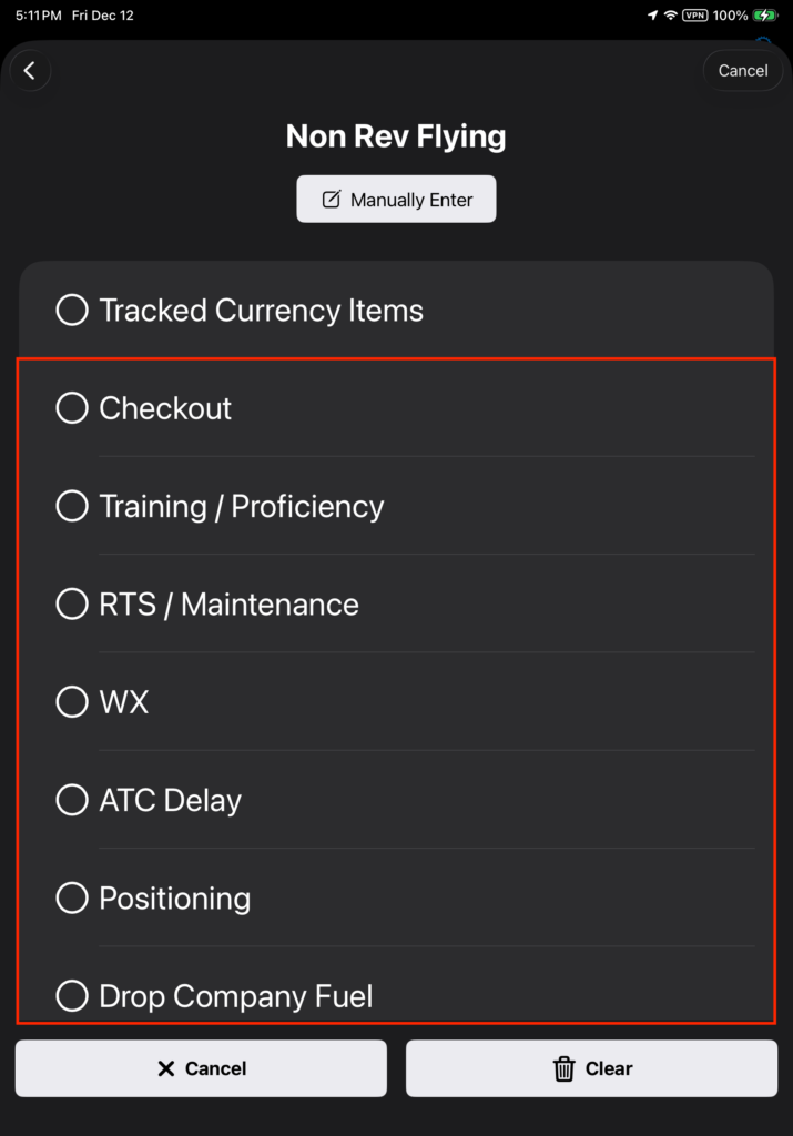 Items not listed under Tracked Currency Items are uploaded as standard load items on the DFR and will not result in any changes to the crew’s currency status.