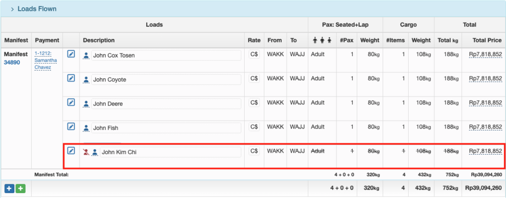 When the DFR is uploaded, the record will be displayed under the No Show section, with the loading and the cost struck through.