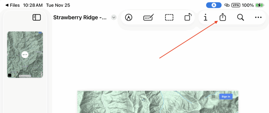 You can also share a document by email, text, airdrop, or any other standard share method by tapping the share icon (internet connection required).