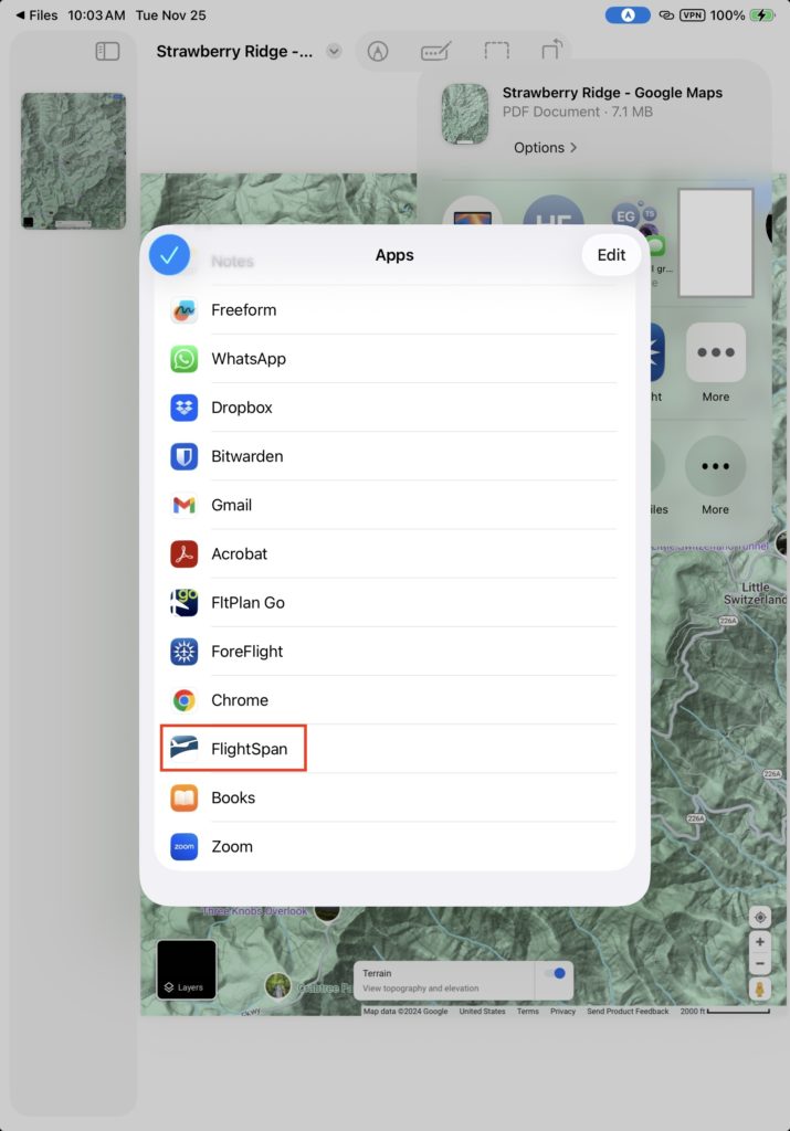 If you select Document, Apple’s Private Access feature will open, since FlightSpan™ does not request access to your documents.