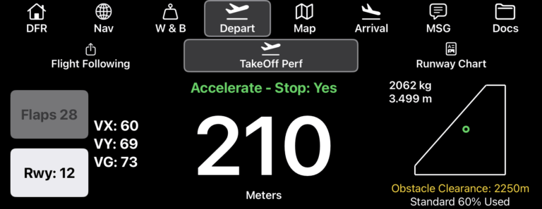 • You can now elect to show Vx, Vy, and Vg speeds on the Takeoff Performance tab by switching them on in Aircraft Type EFB Preferences. NOTE: you must provide FlightSpan™ Support with these speeds for your aircraft type and if you want them to be reduced for weights below max takeoff weight, please provide documentation/charts that define the speed at lower weights.