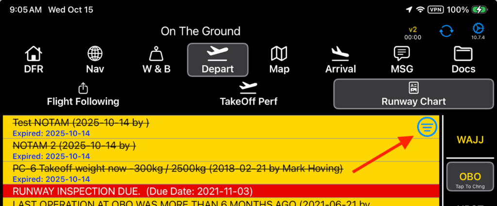 • Added a Hide NOTAMs button when there are three or more expired NOTAMs on a runway chart