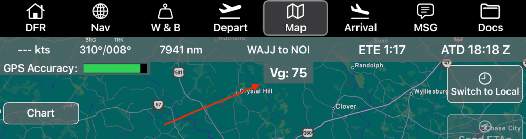• If you show Vg, it also displays on the Map tab after ATD is recorded