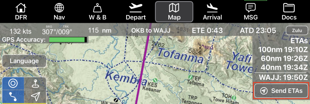 Tap the Send ETAs button to send your ETAs via the v2 tracker.