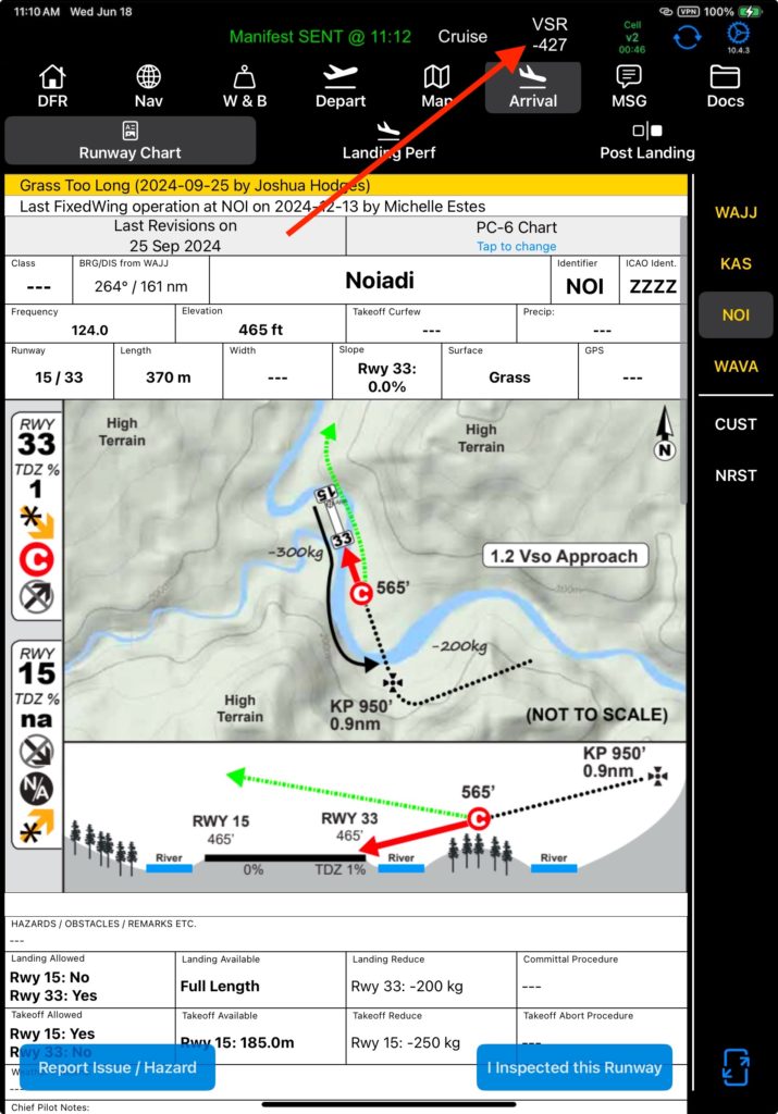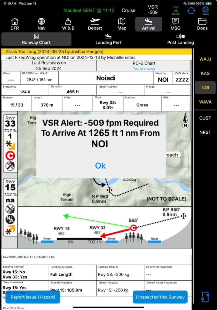 If the VSR Alert is enabled, the alert will pop up regardless of what page you are viewing, indicating the required rate of descent to reach 1000 feet above field elevation one nautical mile from the runway.