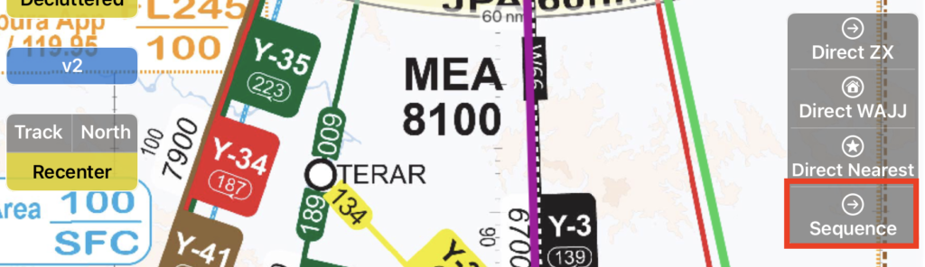 If routing on the currently active leg is other than direct, a Sequence tab will appear below Direct Nearest.