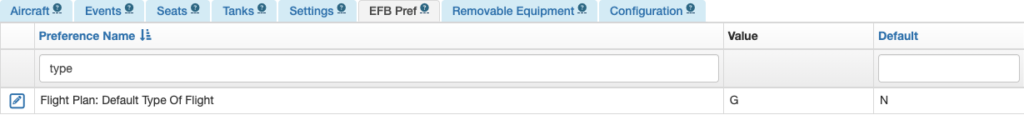 Set the default type of flight in Aircraft Type EFB Preferences.