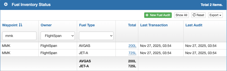 The next time you do an audit at this location, the container types will be there, but the fuel quantities and container numbers will all be zeroed.