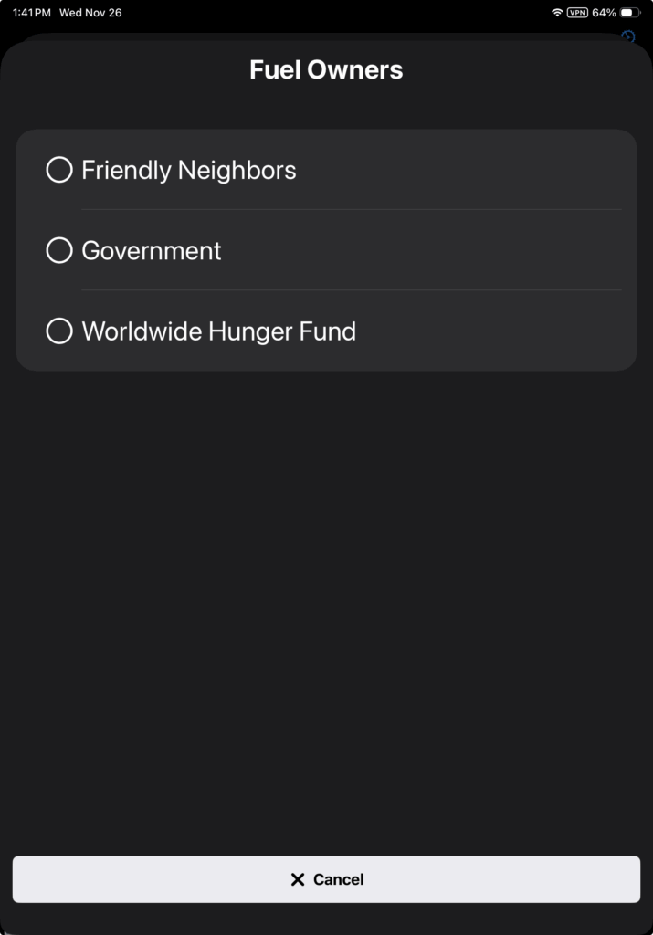 If you wish to inventory fuel belonging to another company, tap the Non-Company Fuel button.