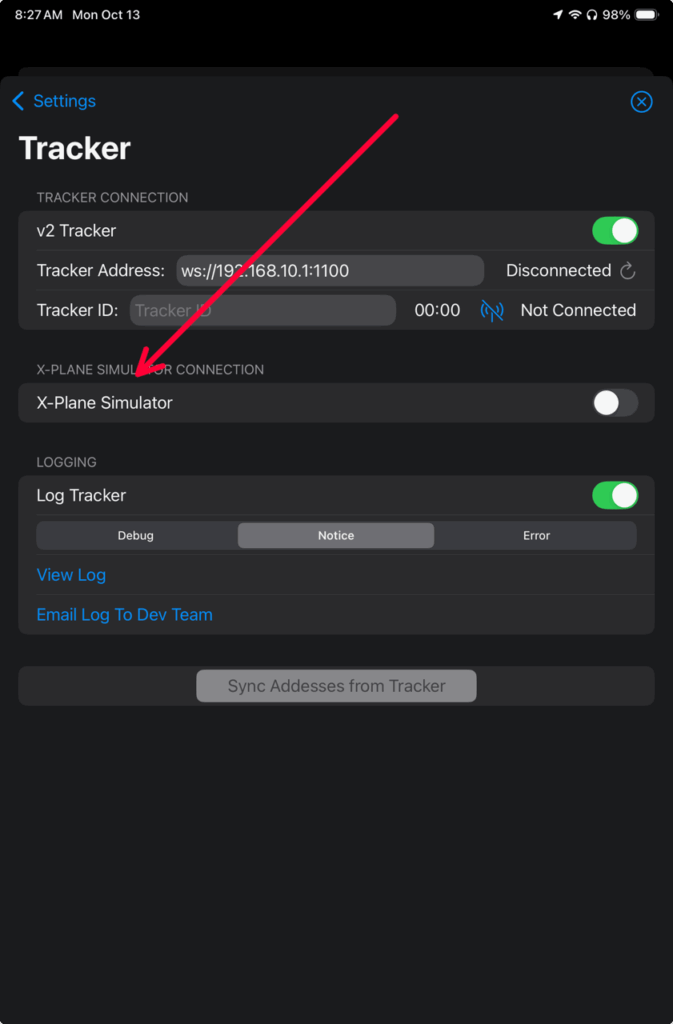 On FlightSpan, go to Settings > Tracker and turn on the X-Plane Simulator toggle.