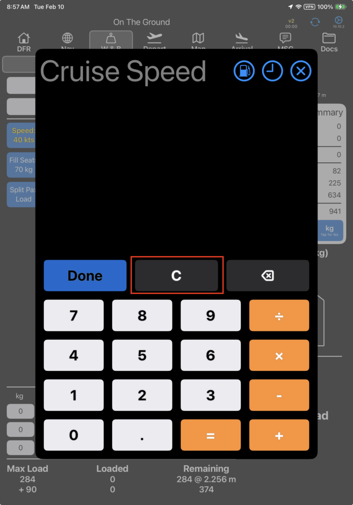 Tap Done And Apply To to apply changes to one or more of the legs as previously described. When you tap Done on the Apply to Legs page, the changes will be saved and you will be returned to the Weight and Balance tab.
