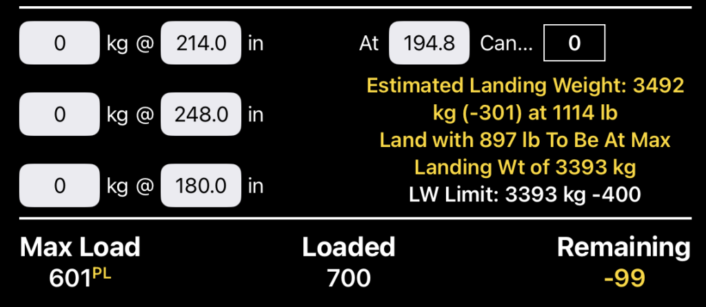 If there is a company runway weight limit, it will be displayed below the estimated landing weight.