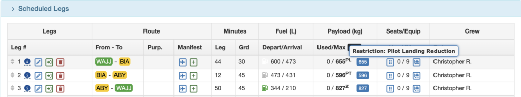 The additional crew will also be visible in the Crew column of the Scheduled Legs section.