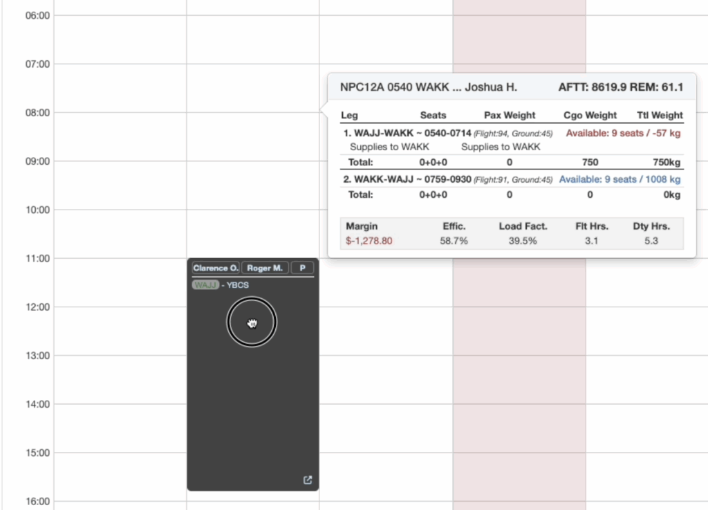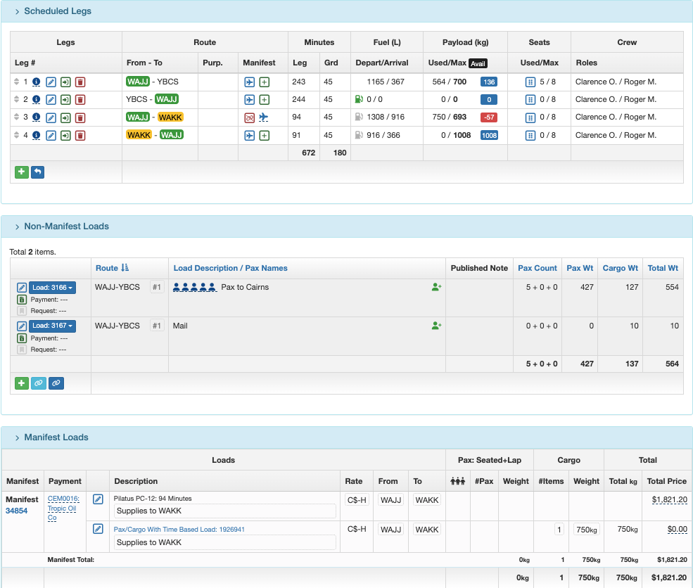 Non-manifest loads can simply be deleted by clicking on the red trash can. The flight request and its load will be restored to the Requests section of the Scheduling Calendar. Then if necessary delete unneeded flight legs.