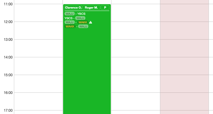 Click Merge, and the new merged flight will be displayed, with crew from the second flight retained. The flight legs from the original flight will be appended to the second scheduled flight.