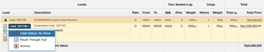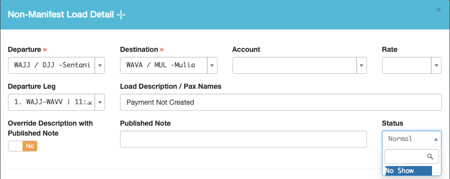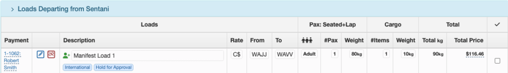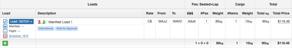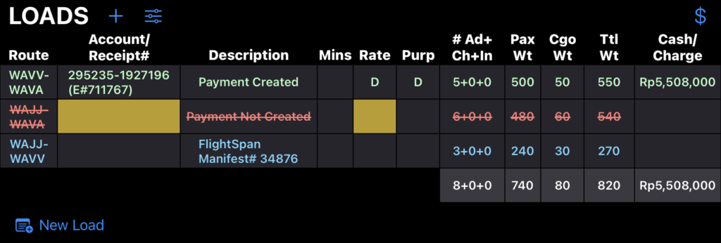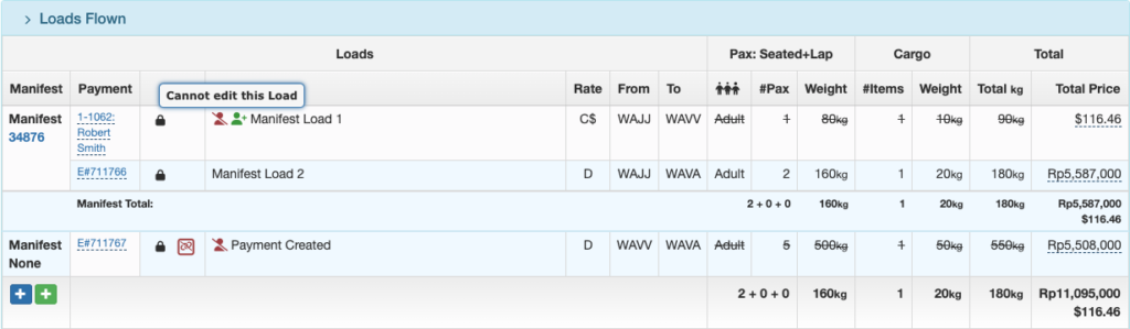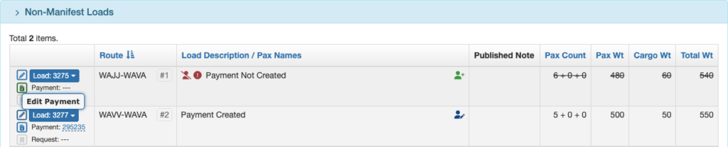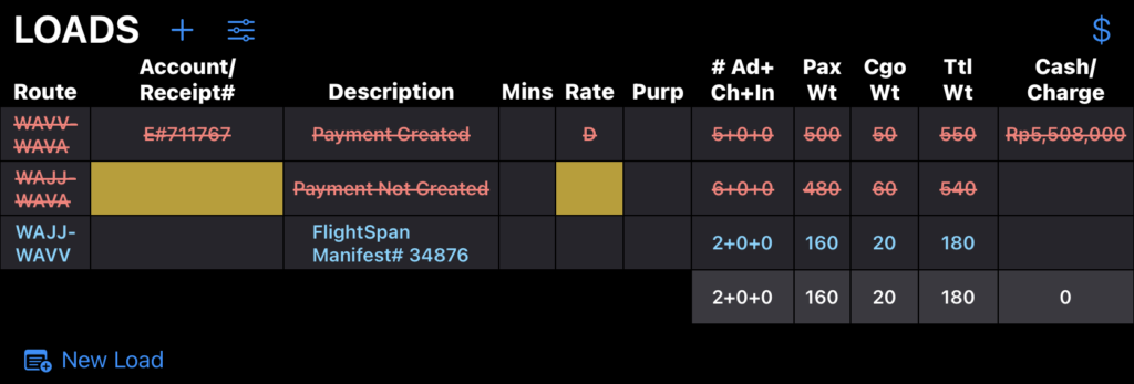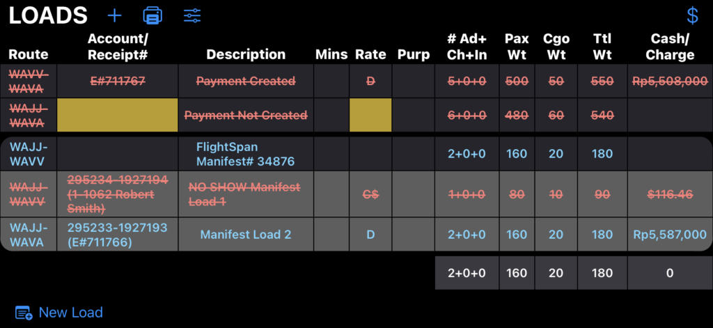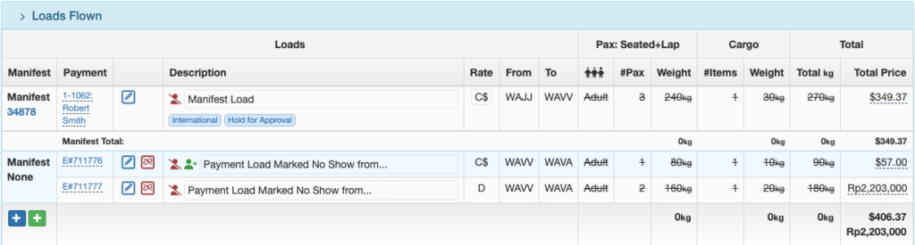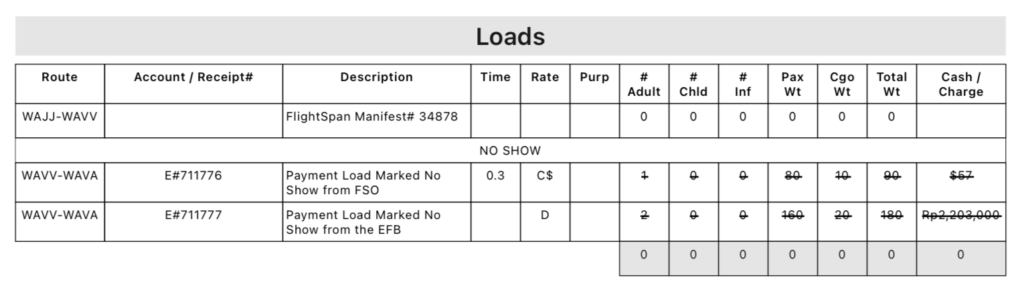 No Show Payment records will be displayed in the Loads Flown section of the Flight Record for both Manifest and Non-Manifest loads.