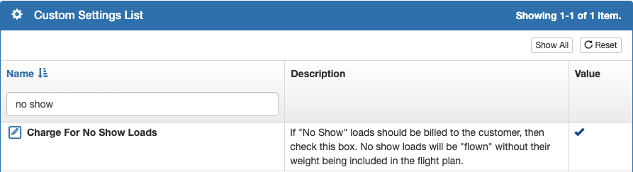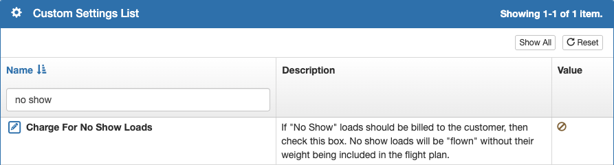 If your company does not charge for no shows, the Company Custom Setting should remain on the default disabled value.