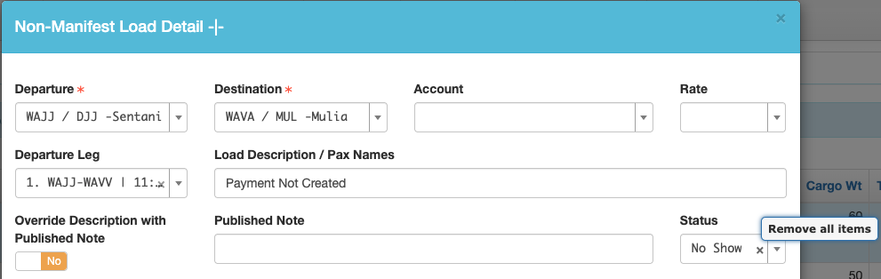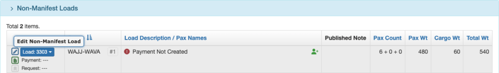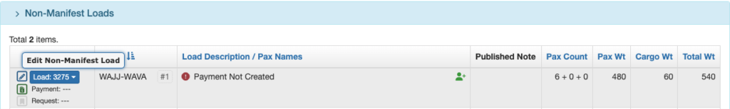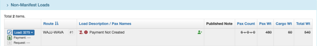Payment Created – Non-Manifest Load