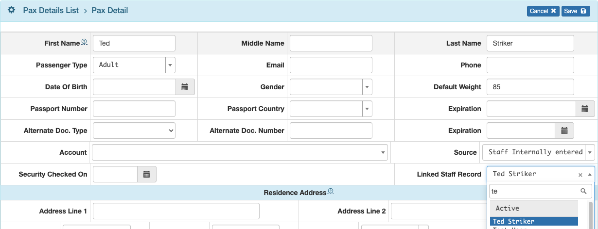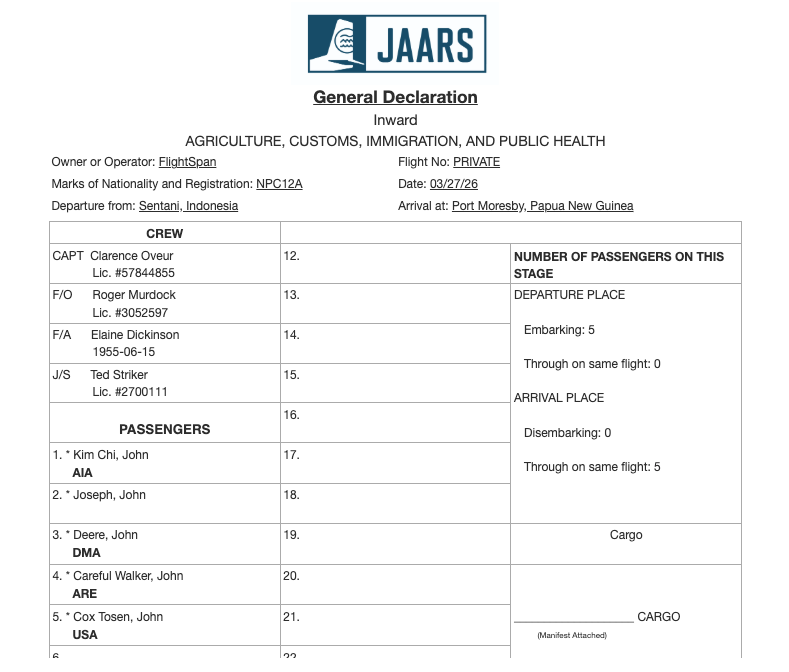 Note that in order for the Jump Seat Crew license number to be printed, their Passenger Record must be linked to their Staff Record, which contains their license information.