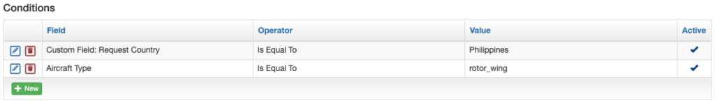 Next click the green new button to add the desired conditions.