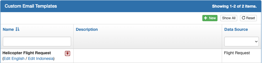 An email template must first be created. Select Custom Email Templates from the menu, and click the green New button.