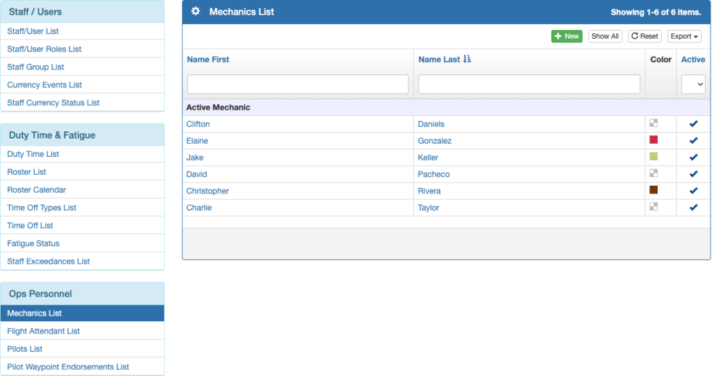 Note: Ops Personnel (Pilots, Mechanics, and Flight Attendants) are a subset of Staff/Users. More details on setting up Ops Personnel in FlightSpan™ Ops can be found under Pilots, Mechanics, and Flight Attendants.