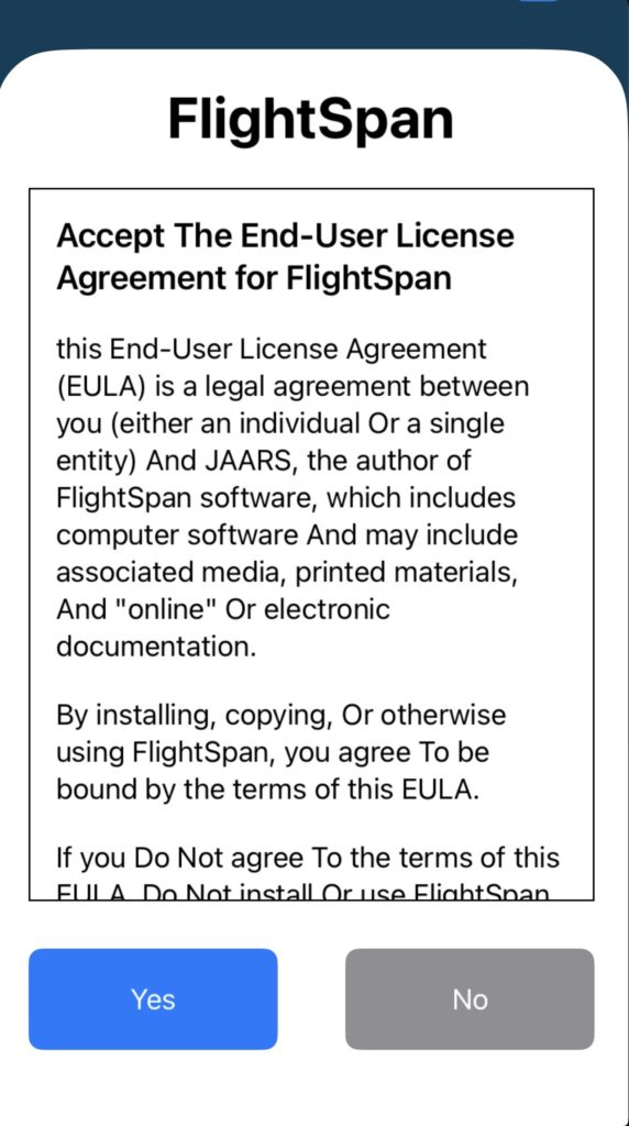 When you first open FlightSpan™ Tools, accept the End User License Agreement.