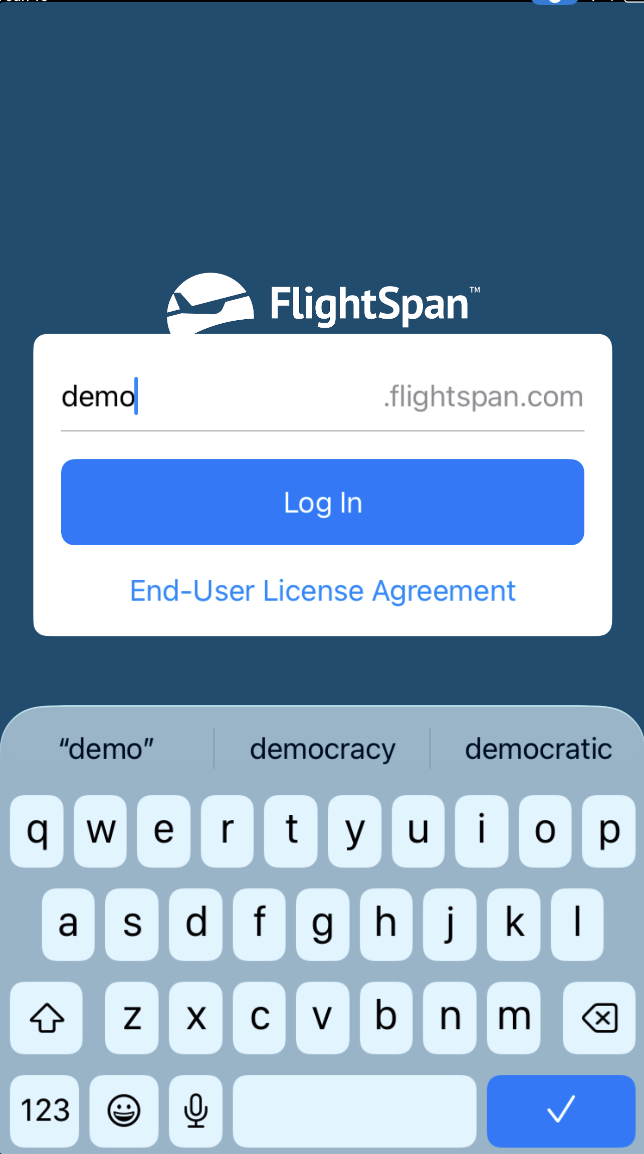 Next enter your personal login credentials for FlightSpan™ Ops and tap the blue arrow key.