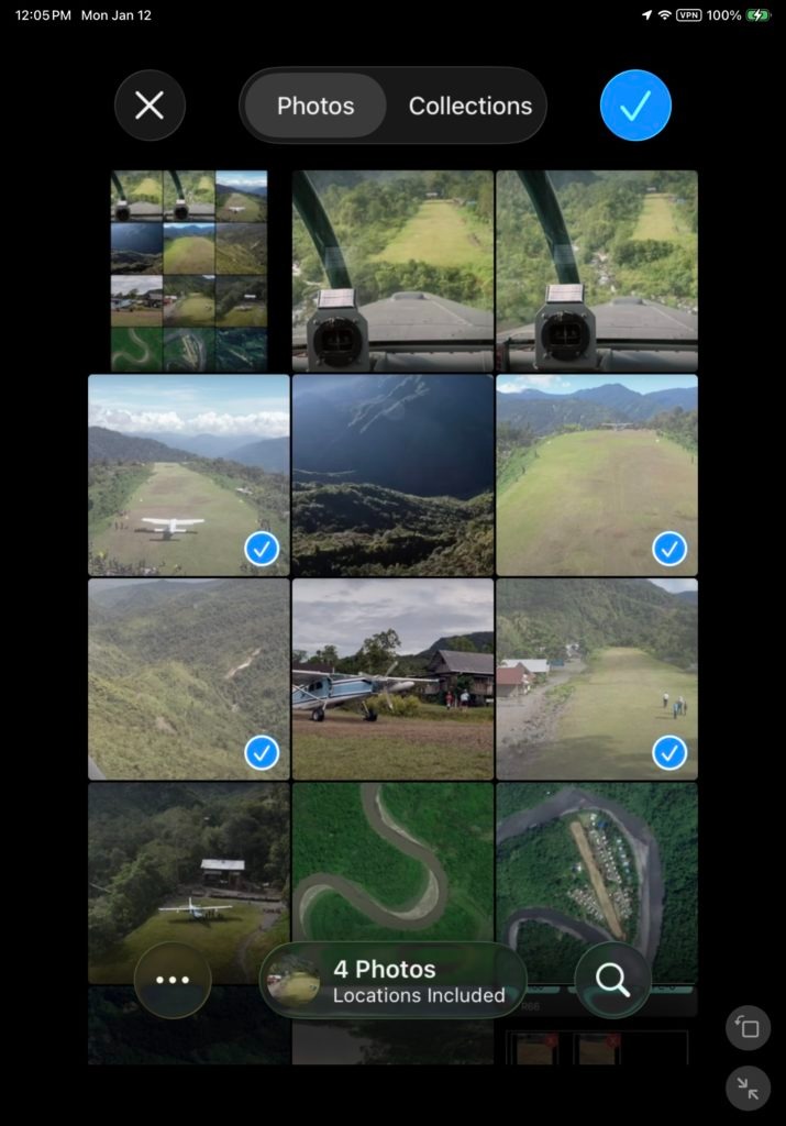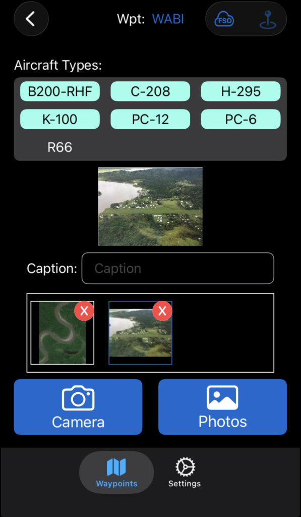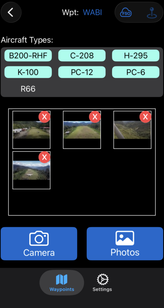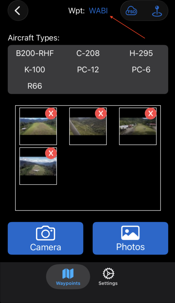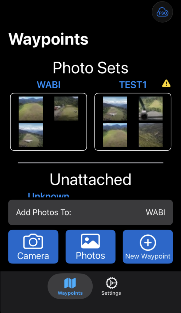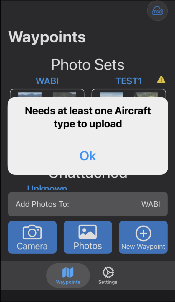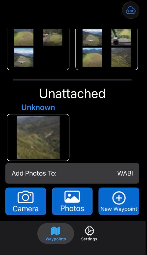 Tap on Unknown to associate the photos with a waypoint and aircraft as previously described.