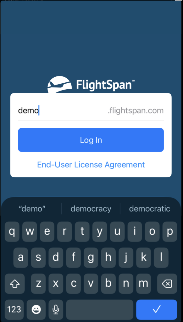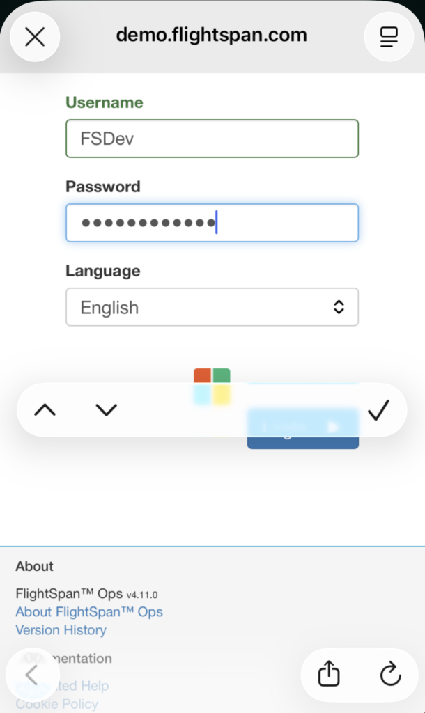 Next enter your personal login credentials for FlightSpan™ Ops and tap the blue arrow key.