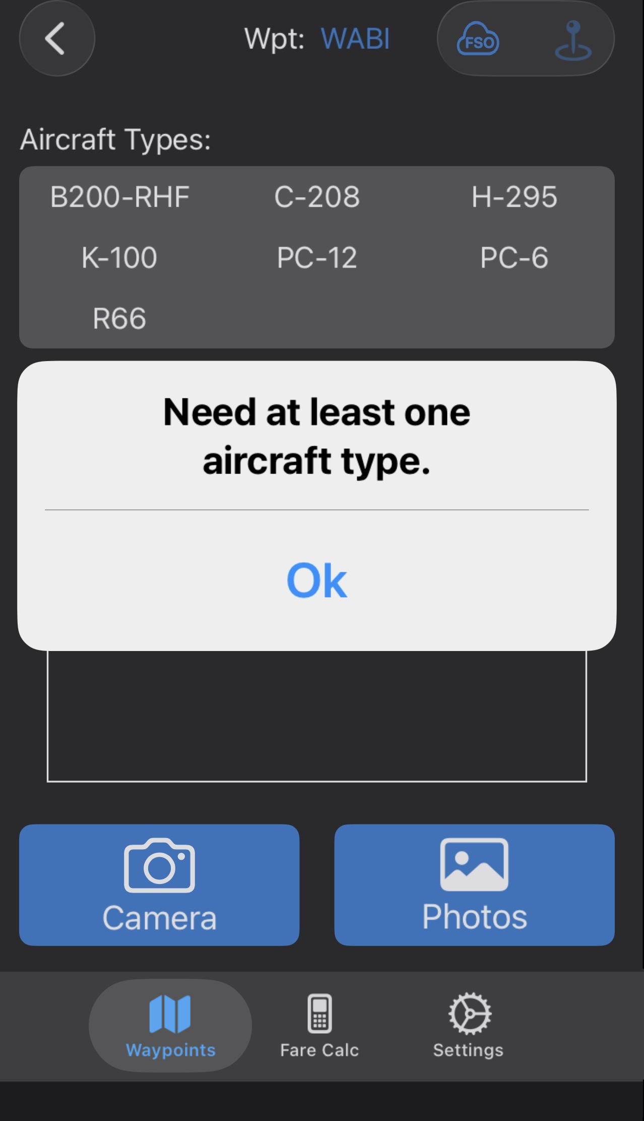 If you attempt to upload when no aircraft types are selected, you will be reminded to select aircraft.