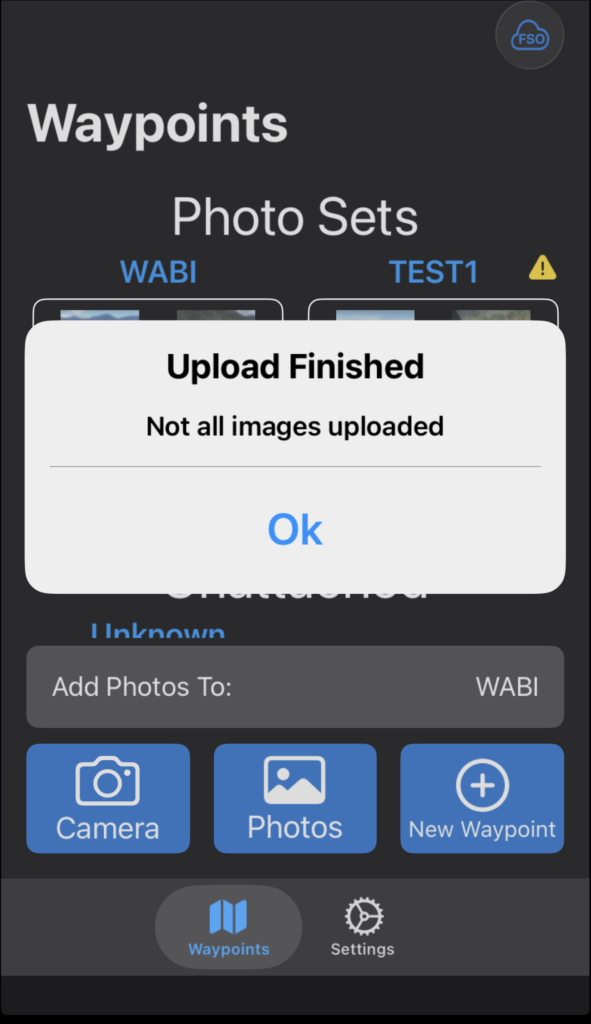 Tap the back arrow to return to the Waypoints tab and upload later.