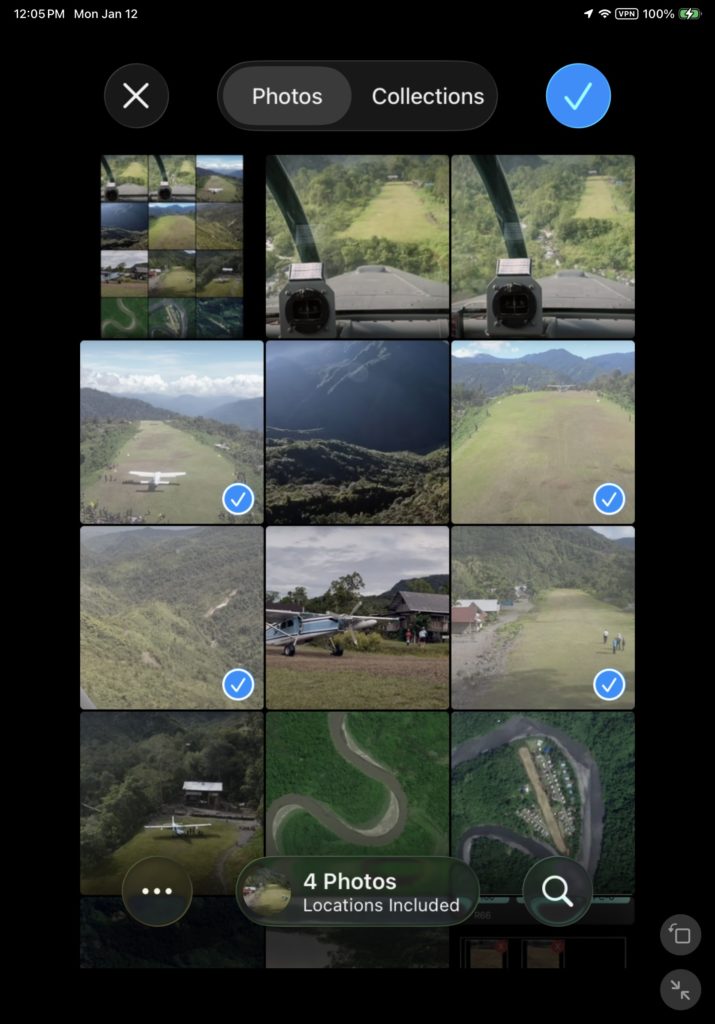 Next select all the desired photos and tap the blue check mark.