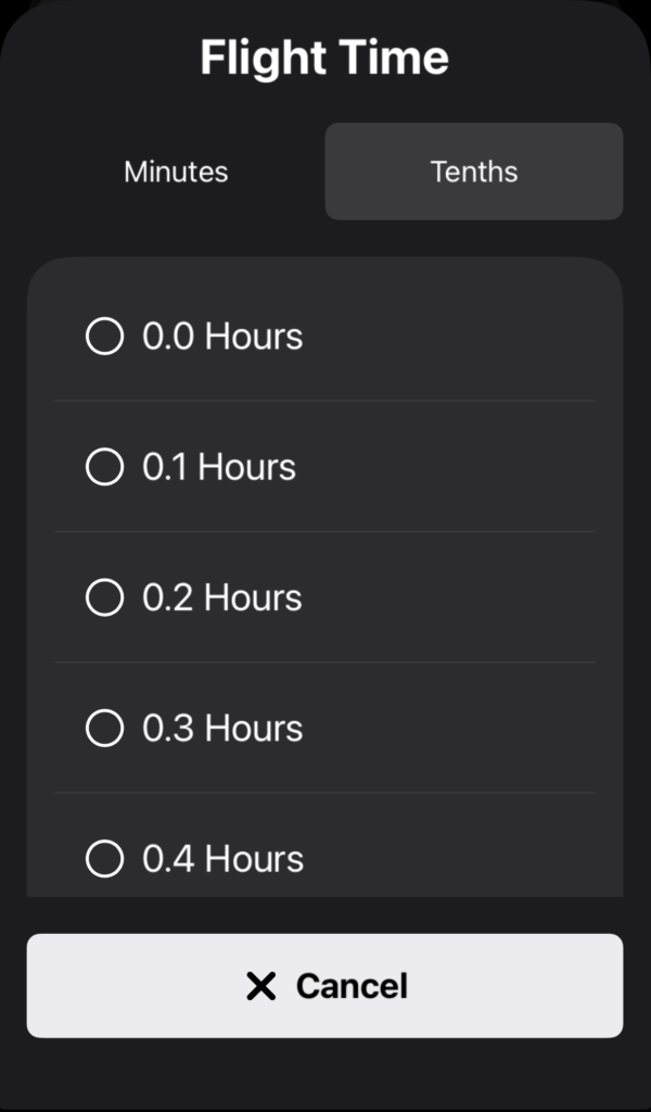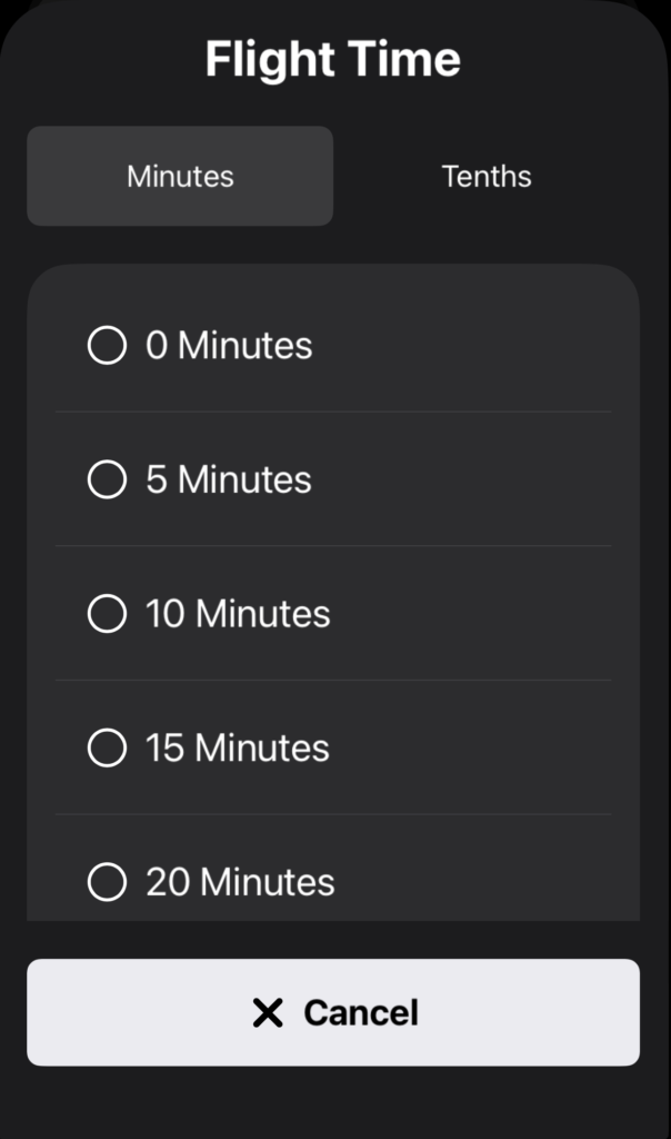 Tap the Flight Time button to change the time if necessary.
