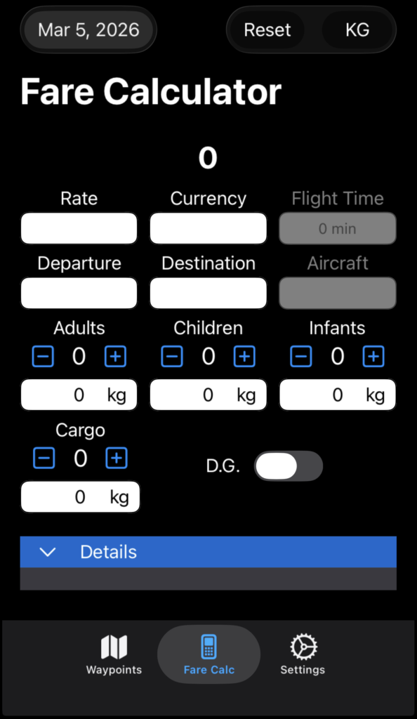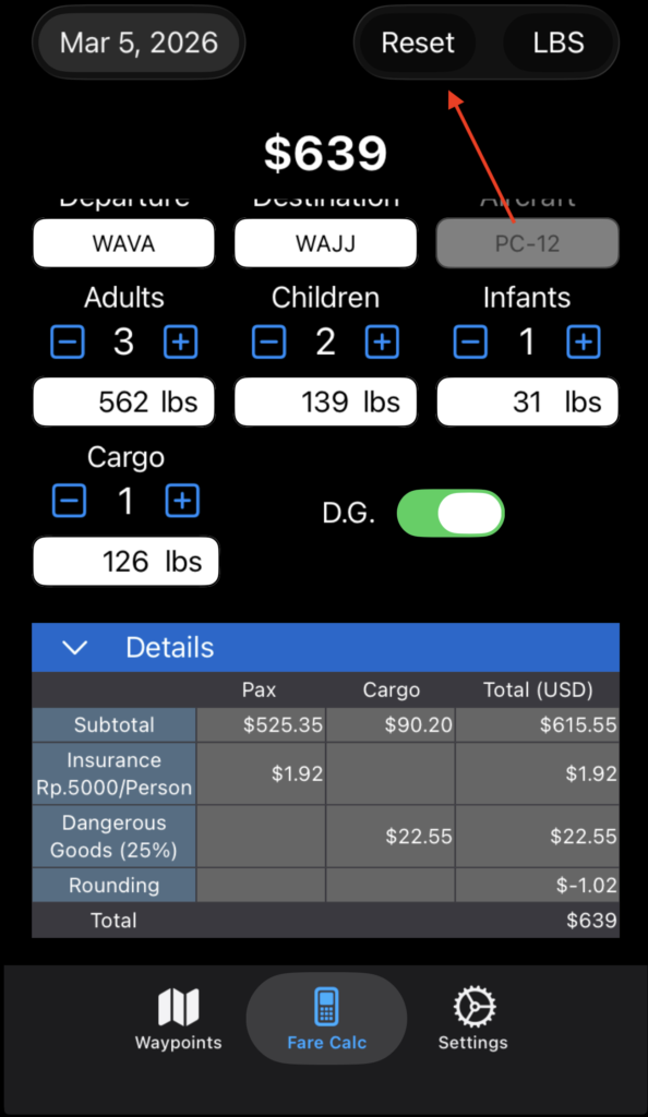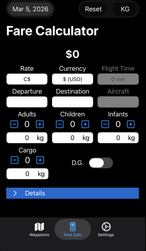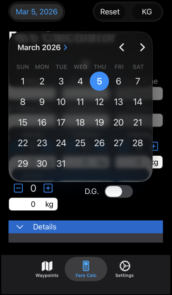 Tap the Fare Calc button to open the Fare Calculator.