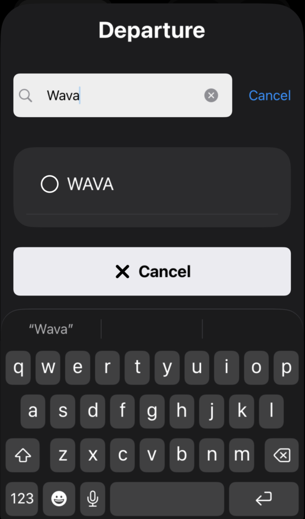 Select the departure point and destination by tapping their respective fields, then search for and select the waypoints.