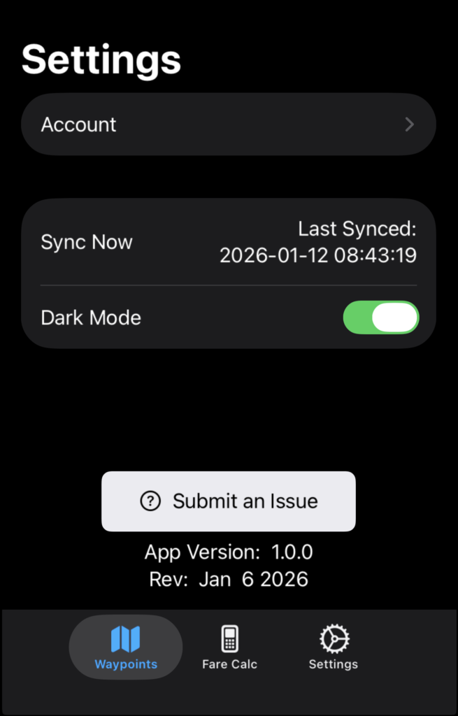 Tap Submit an Issue to report bugs or request features.