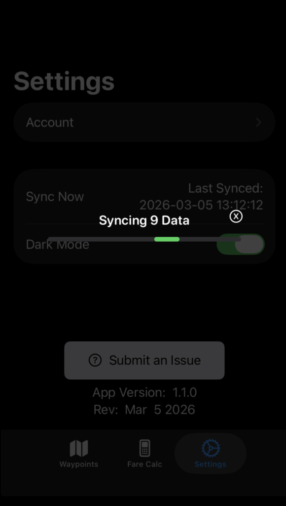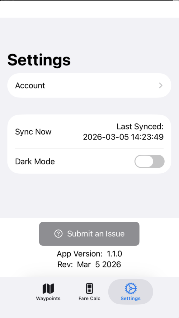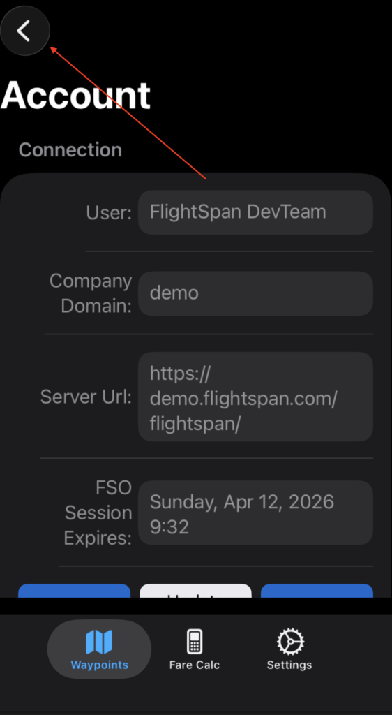 On the main Settings page, tap Sync Now to sync with FlightSpan™ Ops.